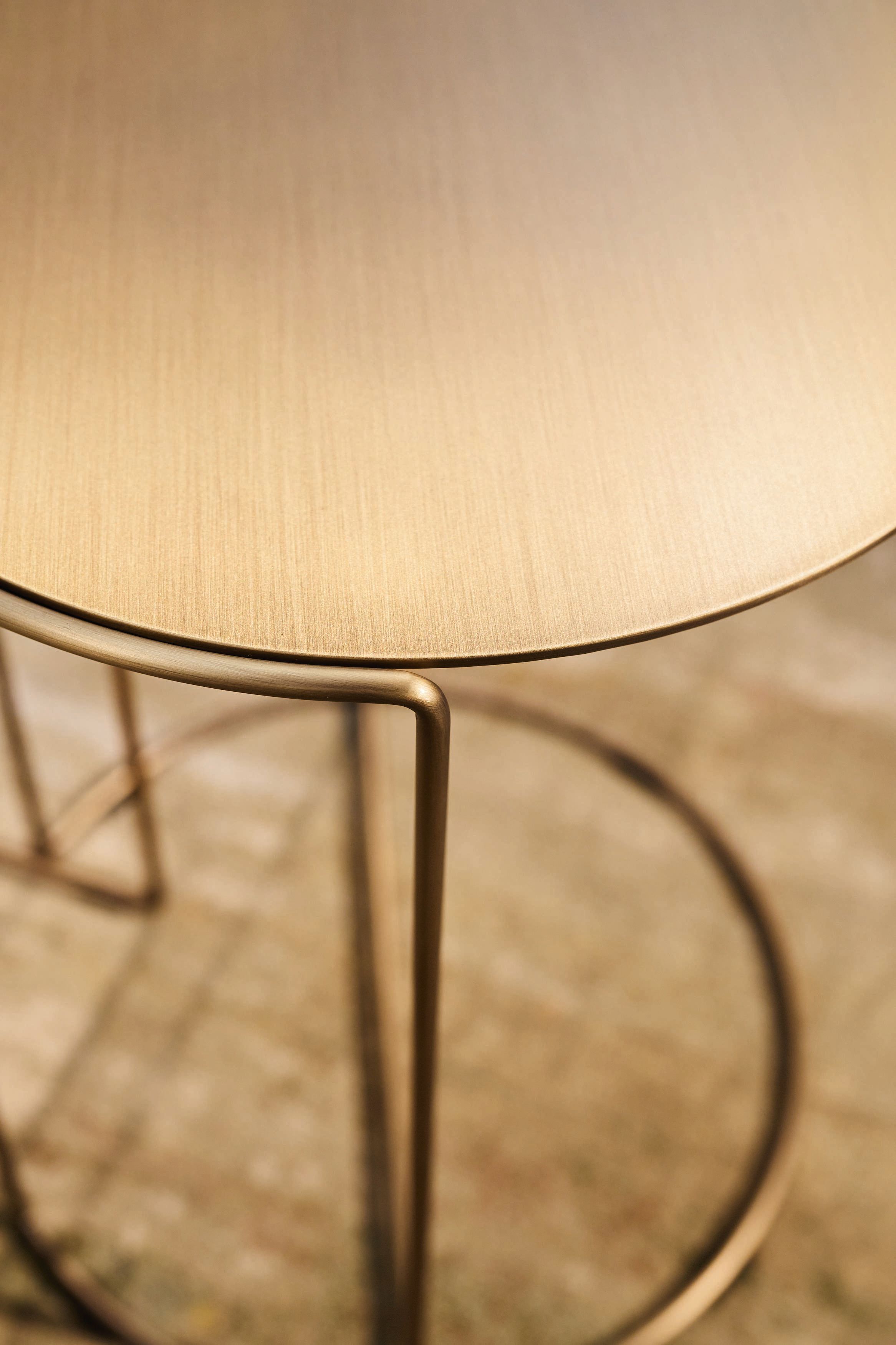 In aufwendiger und liebevoller Handarbeit ist die Oberfläche gestaltet: Gebürstetes Messing mit seinem einzigartigen Patina-Effekt berührt unsere Sinne. Edel, angenehm samtig und zugleich sinnlich warm. Kein Tisch gleicht dem anderen.