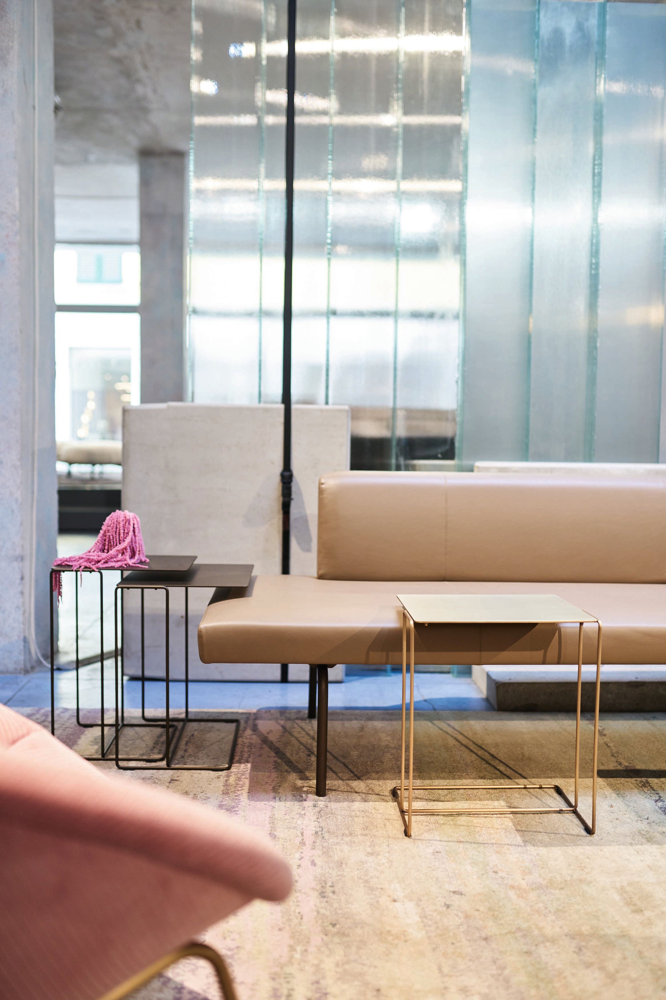 Flexibel, praktisch, wertig: Der Oki Server findet leicht seinen Platz am Sofa – als Coffee oder Side Table, für eine Tasse Tee oder ein Glas Wein. Wahlweise rund oder rechteckig, in Schwarzmatt, Bronzematt, Messing oder in Sand.